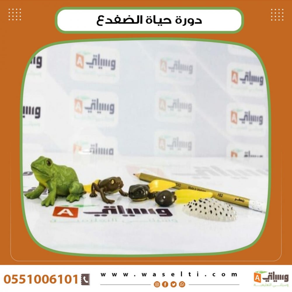 مجسمات مصنوعة من البلاستيك بشكل جذاب توضح فيه دورة حياة الضفدع مما يسهل على المعلم توصيل المعلومة بشكل صحيح للطلاب في هيئة وسيلة تعليمية